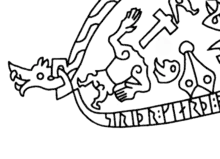 Reginn after he had been killed by Sigurd on the 11th century Ramsund carving in Södermanland, Sweden.