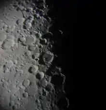 Regiomontanus is named after the 15th century German astronomer and mathematician Johannes Müller von Königsberg, known as Regiomontanus.[1] Like many of the craters on the Moon's near side, it was given its name by Giovanni Riccioli, whose 1651 nomenclature system has become standardized.[2] Earlier lunar cartographers had given the feature different names. Michael van Langren's 1645 map calls it "Christinae Reg. Suec." after Christina, Queen of Sweden.[3] And Johannes Hevelius grouped it with Purbach and Walther as "Mons Libanus" after Mount Lebanon.[4]