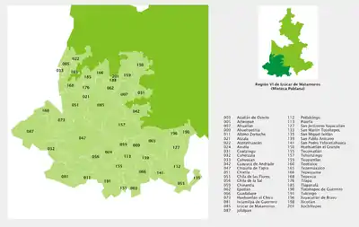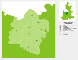 | Municipalities of Región VII - Tehuacán | |||