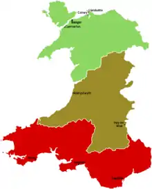 - "Mid Wales" — Carmarthenshire, Ceredigion, Pembrokeshire and Powys