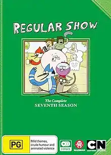 The seventh season of the American animated comedy television series Regular Show, created by J. G. Quintel, originally aired on Cartoon Network in the United States, and was produced by Cartoon Network Studios. Quintel created the series' pilot using characters from his comedy shorts for the canceled anthology series The Cartoonstitute. He developed Regular Show from his own experiences in college. Simultaneously, several of the show's main characters originated from his animated shorts The Naïve Man from Lolliland and 2 in the AM PM. The series was renewed for a seventh season on July 25, 2014, ahead of its sixth-season premiere. The previous season contained 31 episodes to accommodate the film, and this season contained 39 episodes.[1][2]