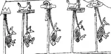 - Sonderzeichen U 103 gemäß Petra Vomberg: Sonderzeichenliste In: Rainer Hannig: Großes Handwörterbuch Ägyptisch-Deutsch : (2800 - 950 v. Chr.). von Zabern, Mainz 2006, ISBN 3-8053-1771-9, S. 1448.