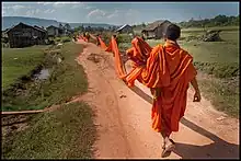 Buddhist monks in Cambodia on a march in the Areng Valley in support of environmental conservation.
