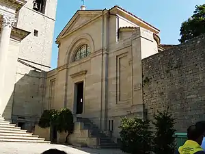 The Roman Catholic Diocese of San Marino-Montefeltro was until 1977 the historic diocese of Montefeltro. It is a suffragan of the archdiocese of Ravenna-Cervia.[9] The current diocese includes all the parishes of San Marino. The earliest mention of Montefeltro, as Mona Feretri, is in the diplomas by which Charlemagne confirmed the donation of Pepin. The first known bishop of Montefeltro was Agatho (826), whose residence was at San Leo. Under Bishop Flaminios Dondi (1724) the see was again transferred to San Leo, but later it returned to Pennabilli. The historic diocese was a suffragan of the archdiocese of Urbino.[10]