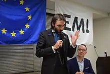LREM was expected to sign a cooperation agreement with the ALDE group for the 2019 European Parliament election.[63] However, owing to the Gilets Jaunes protests and the rise of national populism within France, Macron opted to run a campaign focusing more on electing representatives of his party to the European Parliament, than campaigning for ALDE. Macron styled his campaign as "Renaissance", calling for a renaissance across Europe.[64] Following the election, the ALDE parliamentary group reformed into Renew Europe, incorporating Macron's Renaissance, along with others.