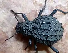 The widespread species occurs on various sandy substrates, and adults are encountered at any time of the year. Larvae and adults feed on dead or decaying plant material, while under or on the soil surface.[5] Though not arboreal, they may climb up to one foot above ground along stumps or shrub stems to escape immersion, a habit not found in related beetles. They have been recorded on field-stooped maize, ploughed in grass sods, sunn hemp and tobacco stalks. On occasion they may attack sown maize or young tobacco crops.[5]