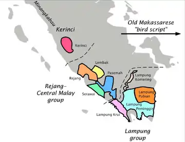Several tribes have their own names in addition to the three mentioned above. For example, this script family is known as the surat ʁincung among the Pasemah ethnic group.[14]
