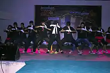 Following each eventful day at Rendezvous, Pronite brings out artists from various cultures together on a stage. It has been the main star attraction of the festival with performing artists ranging from the famous Indian musical trio, Shankar-Ehsaan-Loy[2] to the famous American Rock Band, Hoobastank,[3] having performed here. Dhoom, in the past has staged popular performances like Javed Akhtar,[4] Shankar Mahadevan, Ehsaan Noorani and Loy Medonsa, Javed Ali[5] in 2015, Falak Shabir and Arjit Singh[6] in 2014, Farhan Akhtar,[7] Hoobastank in 2013, Coke Studio@MTV (Papon, Shilpa Rao and Advaita Band)[8] in 2012; Rabbi Shergill,[9] Rohit Deshmukh, Kailash Kher, Amaan and Ayaan Ali Khan, Mohit Chauhan, KK[10] in 2010. The Pro-Show Spectrum has maintained the legacy of hosting star casts of popular Bollywood movies like Chakravyuh (Arjun Rampal, Abhay Deol, Manoj Bajpai, Esha Gupta) in 2012, Band Baaja Baaraat (Anushka Sharma, Ranveer Singh)[8] and Break Ke Baad (Deepika Padukone, Imran Khan)[11] in 2010. Blitzkrieg has staged several international headliner bands like Cypher16 in 2012, Textures in 2010, Malefice[12] in 2009, and Mindsnare in 2008; and Indian Rock Bands like Parikrama.[10]