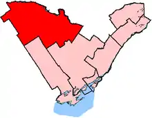 Renfrew—Nipissing—Pembroke includes all of Renfrew County and a small section of Nipissing District around Algonquin Provincial Park.