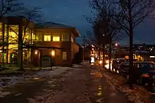 The commercial area is anchored by a Safeway supermarket adjoining which is the Eldorado Motor Hotel, and features a wide array of businesses, including a variety of ethnic-owned and ethnic-themed businesses. The area includes Kensington Gardens, the new master-planned community comprising three residential towers, a supermarket, retail shops, Asian-inspired restaurant, parks and greenspace. It was created by Vancouver-based developer Westbank. Civic services in the area include a branch of the Vancouver Public Library and recreation centre, as well as an official city neighbourhood office.