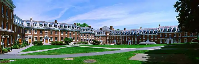 After World War II, the campus again underwent major expansion. Nine dormitories were built at the east edge of campus bordering Burdett Avenue, a location that came to be called "Freshman Hill". The Houston Field House (1949) was reassembled, after being moved in pieces from its original Rhode Island location. West Hall, which was originally built in 1869 as a hospital, was acquired by the Institute in 1953. The ornate building is an example of French Second Empire architecture.[43] It was listed on the National Register of Historic Places in 1973.