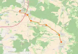 ![]() The former railway line shown on a map from 2017. | |||||||||||||||||||||||||||||||||||||||||||||