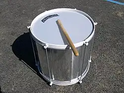 A repinique is a two-headed German drum used in samba baterias (percussion ensembles). It is used in the Rio de Janeiro and São Paulo Carnival baterias and in the baterias of Bahia, where it is known as repique. It is equivalent to the tik-tik in the non-Brazilian drum kit or to the tenor drum in marching bands. It is tuned very high to produce a tone that cuts through the sound of the rest of the bateria and it is a lead and solo instrument.[1]