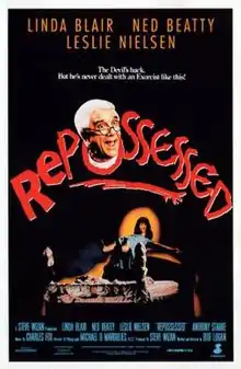Repossessed is a 1990 American comedy film that parodies the 1973 horror film, The Exorcist. It was written and directed by Bob Logan. The film features the original star of The Exorcist, Linda Blair, as well as Leslie Nielsen and Anthony Starke. Many gags parodied events in The Exorcist, such as the green-vomit and head-spinning scenes, and real-life events such as the televangelist scandals of the 1980s