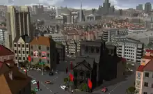 Delays to Republic led the Elixir Studios development team to restrict the ambitious scope of the game. Revisions to the scope included the number of locations, with the concept of "hundreds of cities and towns" to a district-based system within a single city.[4] Furthermore, the level of detail advertised early in the game, citing "thousands of factions, organizations and parties to subvert and control, each with their own goals and powers" was profoundly simplified to a total of ten distinctive factions.[14] Following major delays, Republic reached its beta testing stage in July 2003,[15] with final mastering of the game completed on August 8, 2003,[16] and the game launched worldwide by Eidos Interactive on August 29,[17] reflecting a development cycle of four years.