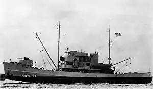Rescue and salvage ships (hull classification symbol ARS) are a type of military salvage tug.[1] They are tasked with coming to the aid of stricken vessels. Their general mission capabilities include combat salvage, lifting, towing, retraction of grounded vessels, off-ship firefighting, and manned diving operations.[2][3][4][6] They were common during World War II.