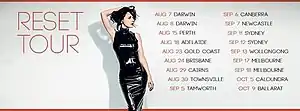 On 9 March 2014, Arena announced the 13-date Reset All Tour.[10] 6 shows were added, and the Hobart show was removed, taking the total to 18. The support act was George Perris.[11]