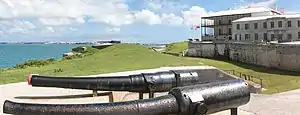 ![]() 6-inch guns overlook the Great Sound | |