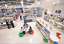 By supplying a wide assortment in a single category for lower prices a category killer retailer can "kill" that category for other retailers.[7] A category killer is a specialist store that dominates a given category. Toys "R" Us, established in 1957, is thought to be the first category killer, dominating the children's toys and games market.[8] For a few categories, such as electronics, home hardware, office supplies and children's toys, the products are displayed at the centre of the store and a sales person will be available to address customer queries and give suggestions when required. Rival retail stores are forced to reduce their prices if a category killer enters the market in a given geographic area. Examples of category killers include Toys "R" Us and Australia's Bunnings (hardware, DIY and outdoor supplies) and Officeworks (stationery and supplies for the home office and small office). Some category killers redefine the category. For example, Australia's Bunnings began as a hardware outlet, but now supplies a broad range of goods for the home handyman or small tradesman, including kitchen cabinetry, craft supplies, gardening needs and outdoor furniture. Similarly Officeworks straddles the boundary between stationery supplies, office furniture and digital communications devices in its quest to provide for all the needs of the retail consumer and the small, home office.
