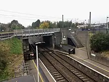 The higher-level platforms (numbered 1 and 2) respectively serve southbound and northbound East Coast Main Line trains operated by London North Eastern Railway which call at Retford. Platform 1 (on the eastern side of the layout) adjoins the main station building. Between the two platforms tracks there are two further lines, used by fast trains not booked to call here.[1]