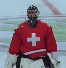 Reto Berra (born 3 January 1987) is a Swiss professional ice hockey goaltender who is currently playing for HC Fribourg-Gottéron of the National League (NL). Berra played seven seasons in Switzerland's National League A, spending time with the GCK Lions, HC Davos and SCL Tigers before joining EHC Biel in 2009 where he was the team's starting goaltender for four years. He was an NHL draft pick of the St. Louis Blues, selected in the fourth round of the 2006 NHL Entry Draft and was traded to the Calgary Flames, with whom he made his NHL debut in 2013–14. Internationally, Berra has played with the Swiss National Team on several occasions; he has appeared in two World Championships. At the 2013 tournament, he shared goaltending duties with Martin Gerber and helped lead Switzerland to a silver medal, the nation's first medal in 60 years.