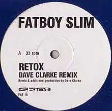 "Retox" is a song by English big beat musician Fatboy Slim, released in 2002 as a 12" vinyl single from his 2000 album Halfway Between the Gutter and the Stars. The single peaked at No. 73 on the UK Singles Chart.[1] The song features Ashley Slater and for this release was remixed by DJ Dave Clarke.
