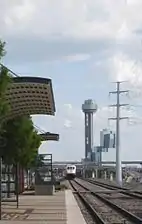 Reunion Tower, also known locally as "The Ball," was completed on February 2, 1978, along with the Hyatt Regency Dallas at Reunion,[5] as part of an urban redevelopment project that also renovated the historic Union Station, which today services Amtrak, Dallas Area Rapid Transit, and the Trinity Railway Express to Dallas/Fort Worth International Airport and Fort Worth.