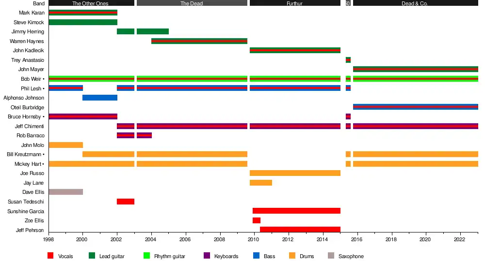 - Former Grateful Dead members are in bold.