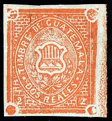 The first adhesive revenue stamps of Guatemala were issued in 1868[1] and preceded the first postage stamps of that country by three years.[2]