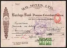 The British South Africa Company issued revenue stamps for use in all of Rhodesia from 1890 to 1909. The first issue had four values from £1 to £10 and they bore the company's coat of arms. These were issued in the form of postage stamps but due to their high values they never required for postal use so they are regarded by many as purely revenue stamps. In 1896, some of these were surcharged with values between £50 and £200. These are exceedingly rare as few were printed. Later in 1896, a new square design still featuring the coat of arms but with a more ornate frame was issued. This was replaced in 1898 with a design similar to the original 1890 issue but with some differences in the stamp's border. This set included a £100 cherry red value, which is very rare and only six copies of the stamp are known to exist.[2] Around 1907, some of these stamps were overprinted REVENUE to disqualify them from postal use, and in 1909 the £1 to £5 values were overprinted RHODESIA when the company approved this usage on its stamps. These continued to be used until the 1920s.