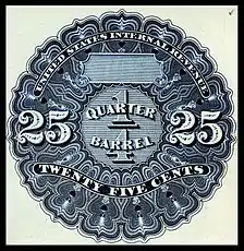 After the tax laws were passed in 1862, private proprietors were allowed to furnish their own stamps, subject to the approval of the Internal Revenue and subsequently were granted a discount on the taxes paid for the goods they sold. Private stamps offered the advantage of having the proprietor's name depicted on the stamp.[34] The proprietor paid the cost of engraving the die and the printing plates which in the beginning varied considerably. Some proprietors paid as little as $60 while others paid as much as $750. After June 1, 1863 a uniform cost of $350 was adopted for all dies with a couple of exceptions for large ones.[35]