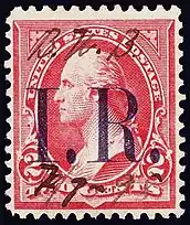 On June 13, 1898, Congress passed the War Revenue Act of 1898 to provide badly needed funding for the Spanish–American War. The law was to become effective on July 1, 1898, leaving only seventeen days to produce the badly needed revenue stamps. In anticipation of the law's passage the Bureau of Engraving and Printing had already commenced work on the dies and printing plates for the new revenue stamps, however they were unable to issue the stamps when the law went into effect. To meet the demand for revenue stamps, existing stocks of standard postage stamps (issued in 1895–1898) were overprinted with the initials I.R. (i.e., Internal Revenue) for use as revenue stamps. Initials are faint on issues with denominations of 8, 10 and 15-cents.[23]