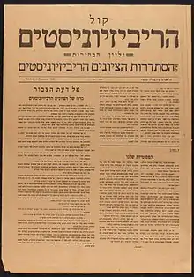 The Revisionists opposed the World Zionist Organization's attempts to negotiate a trade agreement with Hitler.[5] Jabotinsky attempted to get a motion passed to support an anti-Nazi boycott which was defeated 249 to 43.[5] After this, Jabotinsky attempted to set up the Revisionist World Union as a boycott center, but this was also unsuccessful.[5]