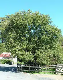 ![]() The Kerikeri Mission Station, with the Stone Store at left, St James at rear, and Mission House on the right | |