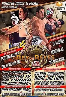 ![]() Official Rey de Reyes poster featuring (from left to right) Psycho Clown, El Mesías, El Texano Jr. and Dr. Wagner Jr. | |||