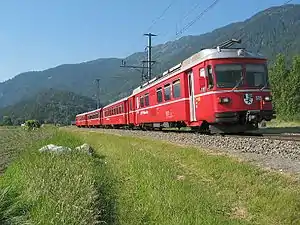 The Rhaetian Railway Be 4/4 is a class of 11 kV 16.7 Hz AC metre gauge railcars operating under the traffic numbers 511–516 on the so-called core network of the Rhaetian Railway (RhB), which is the main railway network in the Canton of Graubünden, Switzerland.