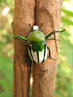 Rhamphorrhina splendens, commonly known as the regal fruit chafer, is a large beetle of the family Scarabaeidae which can grow to 30mm long.[1]