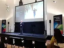 A special feature of the RMF is the annual Komponistenporträt, the presentation of a living composer in talk and music. It was initiated by Walter Fink and has been sponsored by him. From the beginning in 1990 the core of this portrait has been the invitation of a composer for an interview with chamber music. The modern ESWE Atrium[25] was a fitting venue, but since a larger audience got interested the talks were moved to Schloss Johannisberg. In later years more concerts were added, sometimes in different locations, sometimes showing the works of the featured composer in relation to other music, concentrating on large scale works since 2005. Some composers have played or conducted themselves.