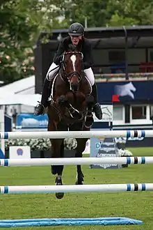 The Rhenish Warmblood, German: Rheinisches Warmblut or Rheinisches Reitpferd, is a German warmblood breed of sport horse. It was registered with the Rheinisches Pferdestammbuch until 2014, when the Hannoveraner Verband took over management of the stud-book.[3] It is traditionally bred around Warendorf State Stud, which it shares with the Westphalian, and is bred to the same standard as the Westphalian and other German warmbloods, such as the Bavarian Warmblood, Mecklenburger, Brandenburger, and Württemberger.