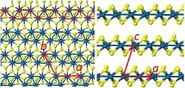 As most other dichalcogenides of transition metals, rhenium diselenide has a layered structure where atoms are strongly bonded within each layer and the layers are held together by weak Van der Waals bonds. However, while most other layered dichalcogenides have a high (hexagonal) symmetry, ReSe2 has a very low triclinic symmetry, and this symmetry does not change from the bulk to monolayers.[4]
