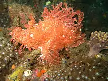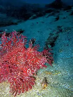 Rhinopias frondosa, the weedy scorpionfish or the weed fish, is a species of marine ray-finned fish belonging to the family Scorpaenidae, the scorpionfishes. This species is found in the Indo-West Pacific. It is a rare but highly desirable fish in the aquarium trade.