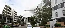 While nearly all of the residential areas on the eastern side of the railway line are low to medium density of one or two storeys, the residential area on the western side of the railway line is high density, with most of the area zoned for high density residential development with buildings of four to eight storeys. There is an area of mixed high density residential and business opposite the railway station in Walker Street. The original planning instrument for the Rhodes Redevelopment Area provided for over 7,500 people to live west of the railway line in Rhodes,[4][5] but with 2009/10 Council amendments, the projected population is now over 11,000 when redevelopment is completed.
