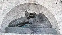 In September 2015, the bronze bust of Rhodes at the memorial was vandalised. The nose was cut off and the memorial was daubed with graffiti accusing Rhodes of being a "Racist, thief, [and] murderer." It appeared that the vandals had attempted to cut off the whole head.[9] The nose was later restored by a local artist and historian. In July 2020, the bust was decapitated.[10][11] The head was recovered nearby and reattached on Heritage Day later that year.[12]