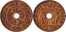 1 penny | 27 mm | 6.30 g | Bronze | Smooth | Hole in center flanked by elephants with crown above | Value around hole in center flanked by sprigs | 1955 | 1963 | ||