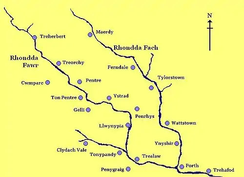 With the increase in population from the mid-19th century the area was officially recognised as the Ystradyfodwg Local Government District in 1877, but was renamed in 1897 as the Rhondda Urban District after the River Rhondda.[5]