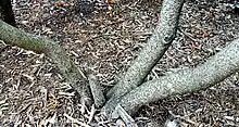 The bark is thin and easily damaged from mechanical impact; branches droop as the tree grows, and will require pruning for vehicular or pedestrian clearance beneath the canopy; routinely grown with, or trainable to be grown with, multiple trunks. The tree wants to grow with several trunks but can be trained to grow with a single trunk. It has no thorns.
