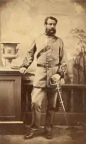 Captain Frederick Augustus Edwardes (30th Regiment) 1829–1878, pictured at left, was the youngest son of Captain David John Edwardes 1787–1866, and he married Charlotte Maria Philipps 1834–1924, of Cwmgwili, Abergwili. Upon retirement from the army, he farmed an estate at Ffrwd, near Wrexham, inherited from Charlotte Maria Picton (née Edwardes) 1755–1840, sister-in-law of Lieutenant-General Sir Thomas Picton. He later separated from his wife, and attempted to make his fortune in the United States. It is unclear what he did there, but he returned to Wales on 23 January 1878 and died of peritonitis at Fishguard, soon after disembarking the ship, and before he had the opportunity to see his wife. His wife Charlotte lived out her later life (1907–1923) at No.1, The Queens House, Wimbledon, accommodation provided by her long-time friend Queen Alexandra, wife of King Edward VII.