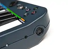 The keyboard controller also has a 3.5 mm TRS connector (jack) which can be used to attach either a stomp switch or an analog expression pedal.
