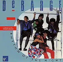 "Rhythm of the Night" is a song by American musical recording group DeBarge, written by Diane Warren and released on February 23, 1985, on the Motown label as the first single from their fourth studio album Rhythm of the Night (1985). The song jump-started the career of the prolific songwriter Warren,[1] and was the biggest hit recorded by the Motown family singing group, peaking at number three on the Billboard Hot 100.