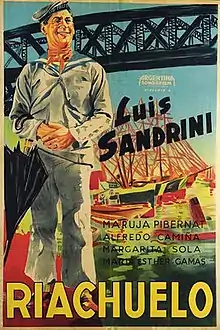 Riachuelo (English: Brook; a popular name for the Matanza River) is a 1934 Argentine comedy film directed by Luis Moglia Barth and starring Luis Sandrini as his popular character Berretín.[1] The cast also included Maruja Pibernat, María Esther Gamas, Alfredo Camiña, Margarita Solá, Héctor Calcaño, Froilán Varela and Juan Sarcione.[1] It was the third film produced by Argentina Sono Film, one of the first major film studios in the country, which had inaugurated the sound period and the Golden Age of Argentine cinema the previous year with the release of ¡Tango![2] The film premiered on 4 July 1934 at the Renacimiento theater in Buenos Aires.[3]